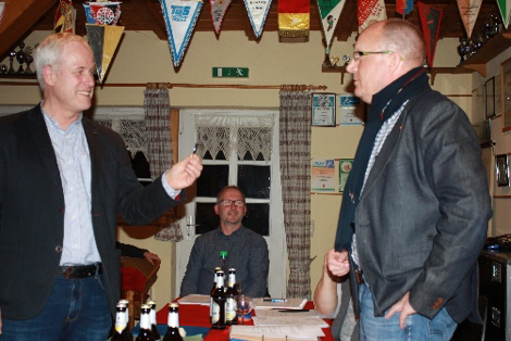 Es freue ihn, dass mit Dirk Wintermann ein kompetenter Nachfolger gefunden wurde. Nach der anschließenden Wahl von Dirk übergab Detlev an Dirk feierlich den Büroschlüssel sowie alle Unterlagen. Dirk Wintermann war schon vor 30 Jahren als Werbe- und Pressewart im Vorstand und hob damals die TSV Info aus der Taufe. Zudem hat er jahrelang die Fußballabteilung geleitet. Beruflich ist er als Geschäftsführer des eigenen, ortsansässigen Unternehmens tätig.