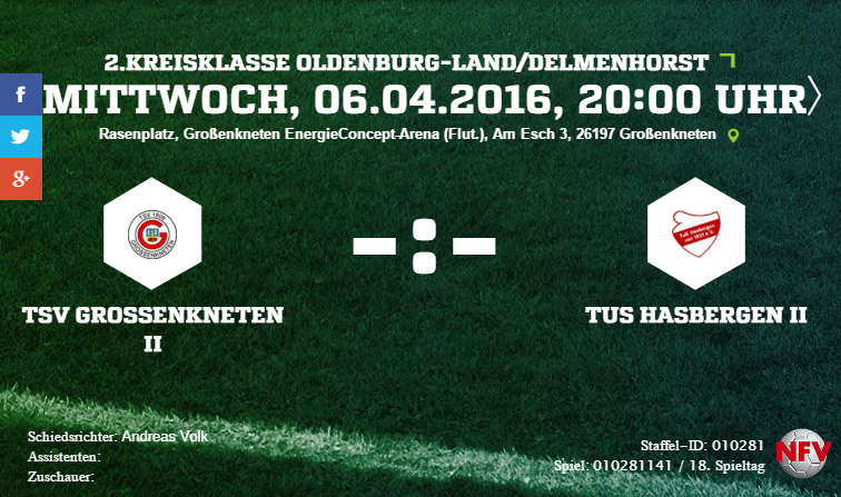 Die 2. Herren empfängt am heutigen Mittwochabend den TuS Hasbergen II zum Nachholspiel in der 2. Kreisklasse. Anstoß durch Schiedsrichter Andreas Volk ist um 20 Uhr in der EnergieConcept-Arena. Nach dem souveränen 3:0 in Bookhorn am vergangenen Sonntag erwarten die Gronewold-Elf nun einige englische Wochen, um den "Schiefstand" in der Tabelle etwas zu begradigen. Unsere ZWEITE hat nämlich aktuell is zu vier Spiele weniger ausgetragen als die Konkurrenz und könnte bei halbwegs positivem Verlauf dieser Nachholspiele ein halbes Dutzend Plätze in der Tabelle gutmachen. Die Chancen dafür stehen nicht zu schlecht, sind immerhin die nächsten drei Spiele auch noch Heimspiele.