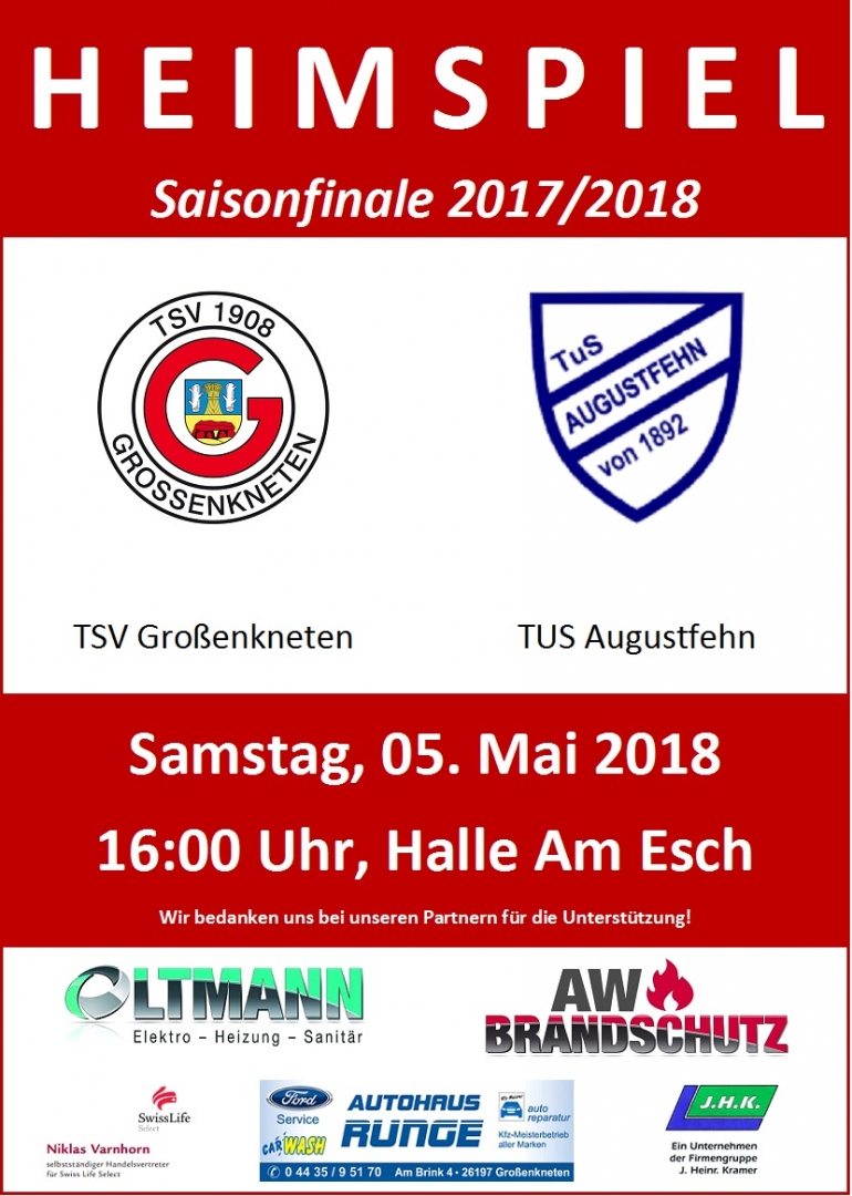 Am Samstag ist es soweit: Das letzte Saisonspiel der Handballherren findet in heimischer Halle gegen den direkten und durchaus schlagbaren Konkurrenten aus Augustfehn statt.