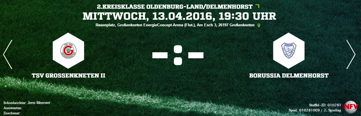 Die 2. Herren ist weiter auf Mission Tabellenbegradigung unterwegs und empfängt an diesem Mittwochabend das Schlusslicht Borussia Delmenhorst zu einem weiteren Nachholspiel der 2. Kreisklasse. Der 2:1-Heimsieg vom Samstagabend gegen SC Dünsen war zwar alles anderes als überzeugend, aber unterm Strich standen nicht nur die drei Punkte auf der Habenseite, auch behielt die weiterhin ordentliche Bilanz ohne Niederlage für das Kalenderjahr 2016 (2 Siege, 2 Remis) ihre Gültigkeit. Gegen den Tabellenletzten wäre alles andere als ein klarer Sieg eine herbe Enttäuschung, allerdings muss das Team gewarnt sein, tat man sich doch in der Vergangenheit vor allem gegen Teams aus dem Tabellenkeller unnötig schwer. Anstoß ist in der EnergieConcept-Arena ist im Übrigen schon um 19:30 Uhr, also eine halbe Stunde früher als die meisten abendlichen Heimspiele der Kneter Fußballsenioren.