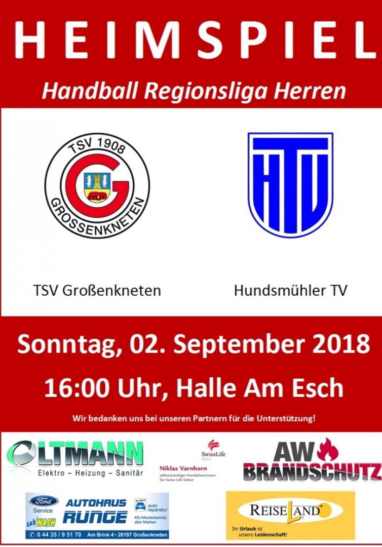 Am Sonntag bestreiten die Handballherren des TSV Großenkneten ihr erstes Spiel der neuen Saison in der neuen Liga. Das Spiel findet in der heimischen Halle Am Esch statt und zu Gast ist der Hundsmühler TV. Die Mannschaft um Trainer Helge Schomacker hat sich personell deutlich verändert. Diese Veränderungen stellen das Team zwar vor eine große Herausforderung, bieten aber gleichzeitig auch neue Chancen, denen die Mannschaft mit Freude entgegentritt.