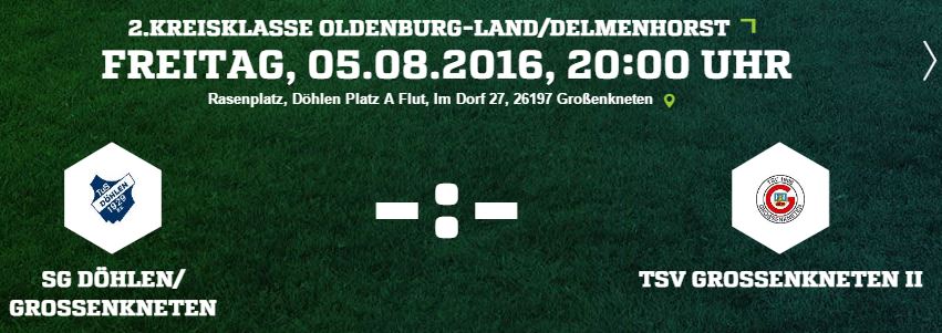 Nach dem Aufstieg der SG Döhlen/Großenkneten in die 2. Kreisklasse spielt nun eben diese "3. Herren" unseres Vereins zusammen mit der 2. Herren, die in dieser Liga in der zurückliegenden Spielzeit ihr bisher bestes Saisonergebnis mit Platz 5 nach 30 Spieltag erreichte. Wie der Zufall (oder der Staffelleiter) es wollte, kommt es gleich am 1. Spieltag zum vereinsinternen Aufeinandertreffen. Heute Abend um 20 Uhr ist Anstoß auf der "Döhler Kampfbahn", wenn SG-Trainergespann Thalheim/Hinze ihre Mannen erstmals gegen die Gronewold-Elf ins Rennen schickt. Dieses Derby hat einiges Interesse im Umfeld geweckt, so wird fupa.net - das Fußballportal der Nordwest Zeitung - mit einem Kamerateam vor Ort sein. Natürlich wird wie immer bei Heimspielen der Spielgemeinschaft auch für das leibliche Wohl der Zuschauer bestens gesorgt sein. Hier geht's zum Facebook-Event!