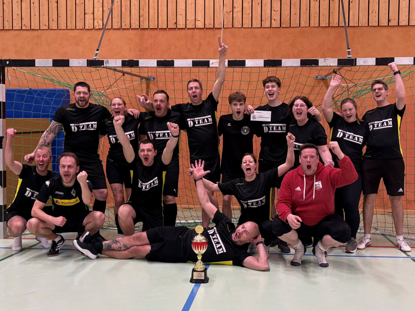 Unbedingt erwähnt werden muss der Ortspokal, wo es das D-Team in packenden Spielen zum Überraschungsteam bis auf Platz 1 geschafft und die Halle zum Beben gebracht hat. Was mit Sicherheit auch auf die unzähligen Fans zurückzuführen ist, die nicht zu überhören waren. Und wenn dann auf einmal eine Hello Kitty Pyjama Hose oder ein ganzkörper Kapitänsoutfit auf dem Spielfeld auftaucht, dann natürlich nicht ohne Grund. Einen Sonderpreis für das beste Outfit vergeben wir gerne!